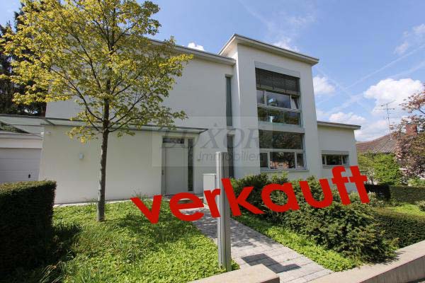 Beschreibung : Als dieses Villenanwesen 2001 errichtet wurde, war es architektonisch seiner Zeit bereits voraus und läutete die bis heute moderne, geradlinige Architekturmode ein, die an die Bauhaus-Zeit erinnert. Statt verspielter oder schnörkeliger Erkerchen, Gauben und Wendeltreppen sind klare, gerade Linien, hohe Räume, große Fensterelemente und ein flaches Dach die Elemente dieser durchdachten Architektur.