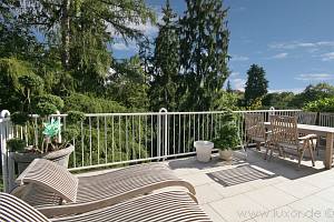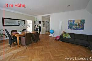 Der 47 m² große, sehr helle Wohn-/ Essbereich ist offen gestaltet, von hier gelangt man auf die 24 m² große Dachterrasse mit direktem Blick in den Kurpark. Die Küche (18 m²) erreicht man über den Wohn-/ Essbereich. Auch von hier hat man direkten Zugang zur Dachterrasse. Auf dieser Ebene befinden sich ebenfalls ein helles Tageslichtbad und ein weiteres Zimmer, was derzeit als Kinderzimmer genutzt wird.