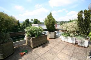 Flächen : 122 m² zzgl. 8 m² Nfl. = 130 m² Gfl. Zimmer ges. : 3,5 Schlafzimmer : 2 Bäder : 1 Beschreibung : Dies ist ein Penthouse, wie man es sich vorstellt - stadtnah und dennoch ruhig, nur wenige, ruhige Mitbewohner im Haus, mit dem Aufzug vom Keller bis ins Dach, keine Schrägen, eine große Terrasse, die sich um die Wohnung herum zieht und je nach Witterung immer einen Sonnen- oder Schattenplatz bietet. Die grüne Umgebung und der weitläufige Blick wird sicherlich auch Sie begeistern.